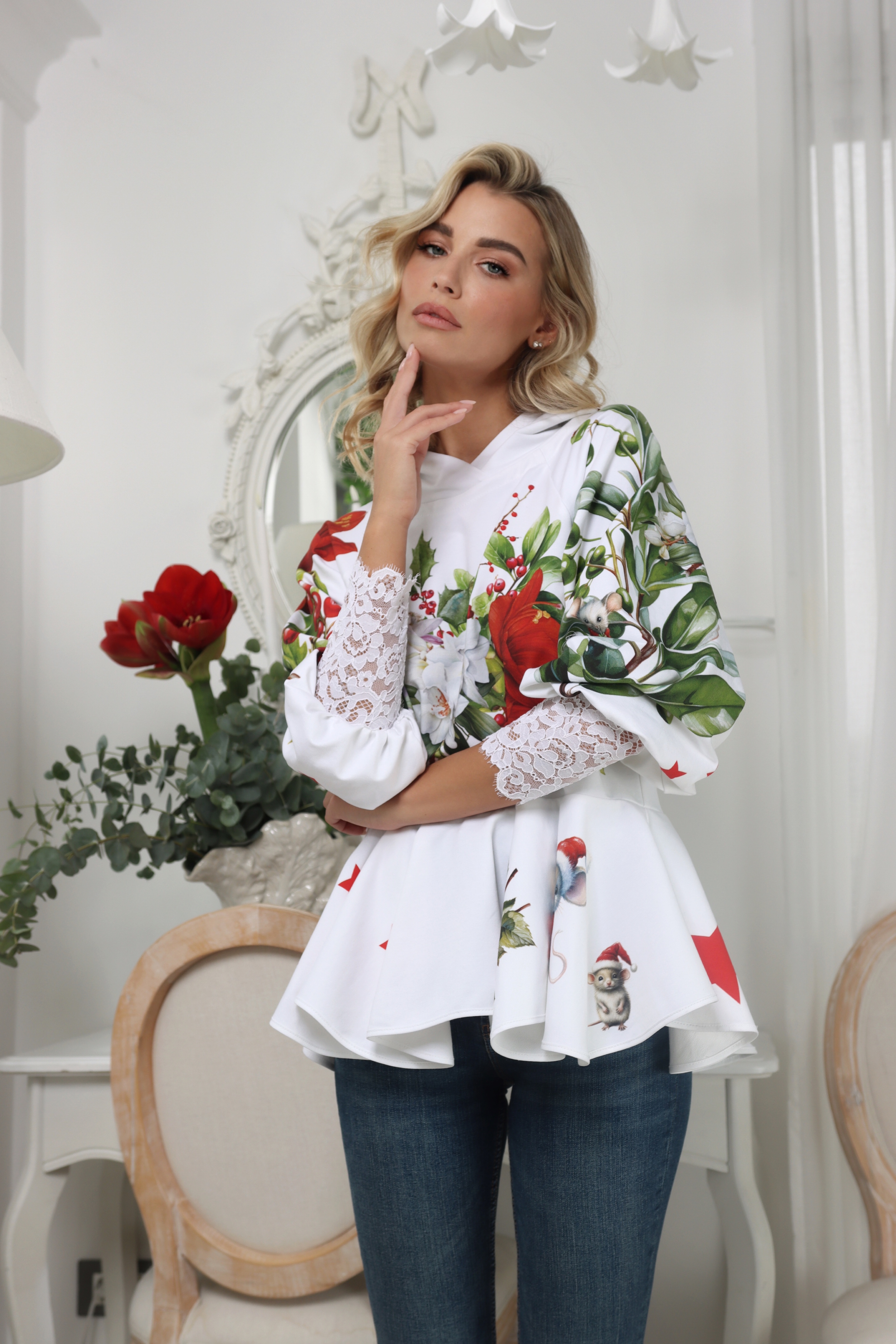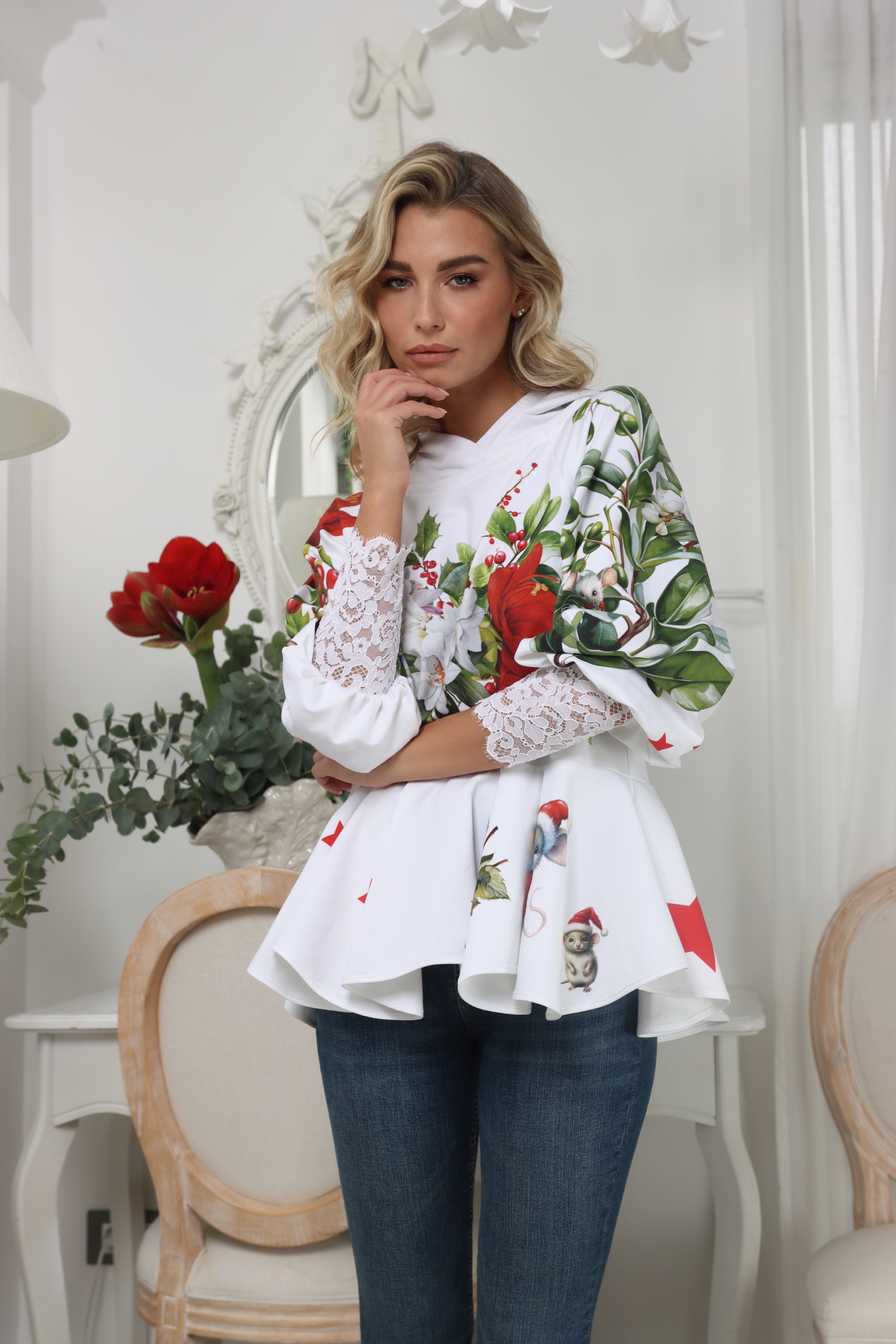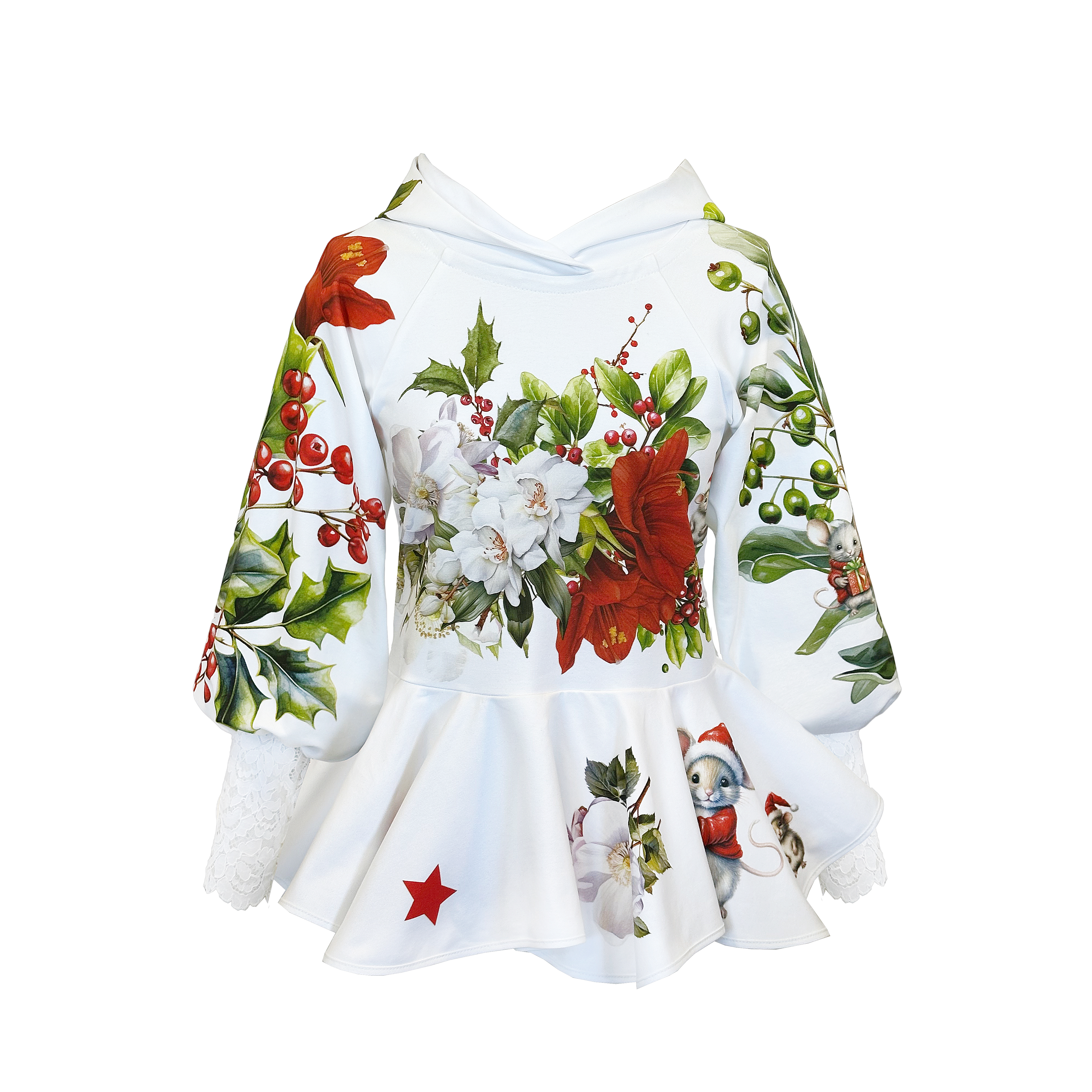 Posebnost ovog komada je originalni Boudoir božićni print, raskošan motivima zimskog cvijeća, bobica i malih ilustriranih likova koji stvaraju pravi blagdanski ugođaj. Hoodie je istovremeno elegantna i iznimno nosiva – savršena za blagdanske dane, cosy outfite ili kao statement komad za svakodnevne kombinacije.